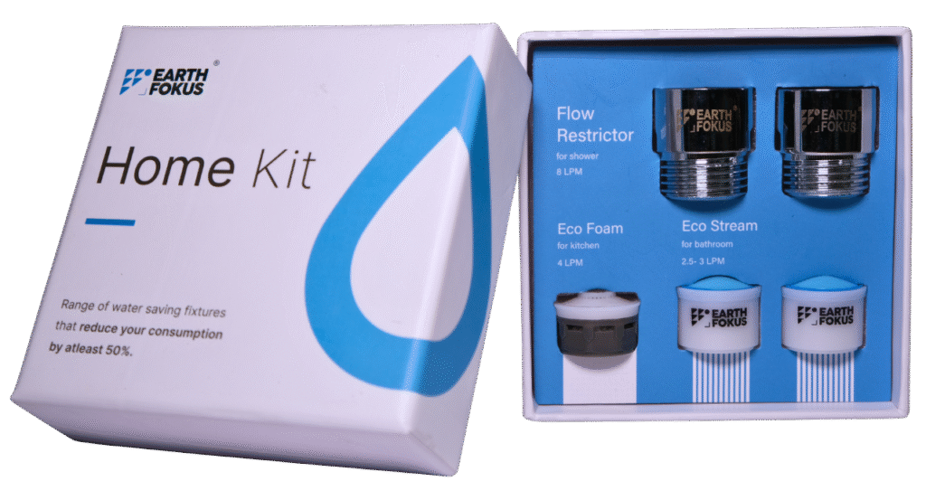 Designed for 1, 2, and 3 BHK homes, this kit includes retrofits for kitchens, bathrooms, and showers — helping you reduce your water consumption by up to 50%, without compromising on your experience